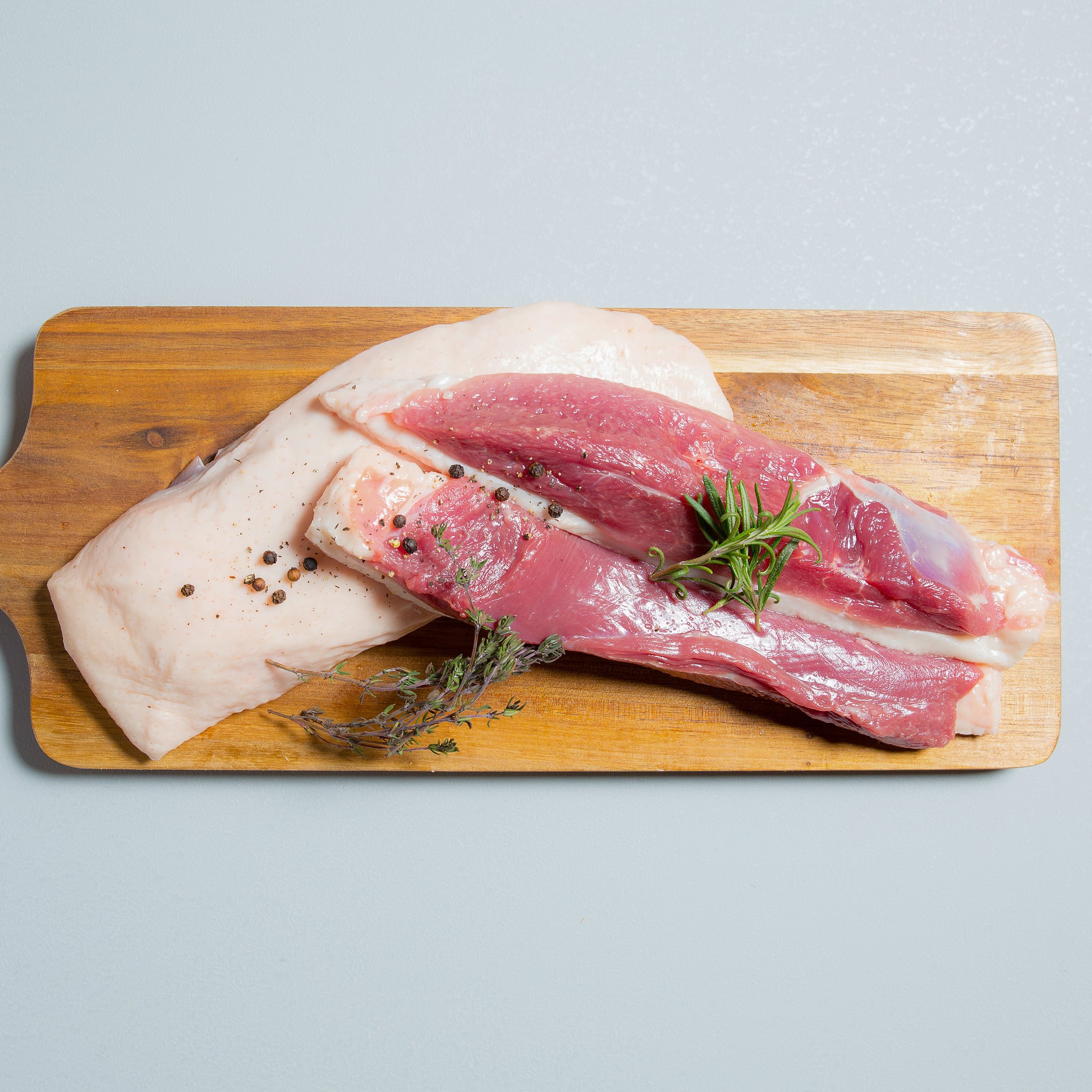 最上鴨(もがみがも)は、自然豊かな環境の中で、腸活を意識した独自の飼育方法により、健康的に育てられた特別な鴨です。その中でもむね肉(ロース)は、赤身と脂肪の絶妙なバランスを誇り、しっとりとした食感と、芳醇なうまみが特徴の“至高の部位”。